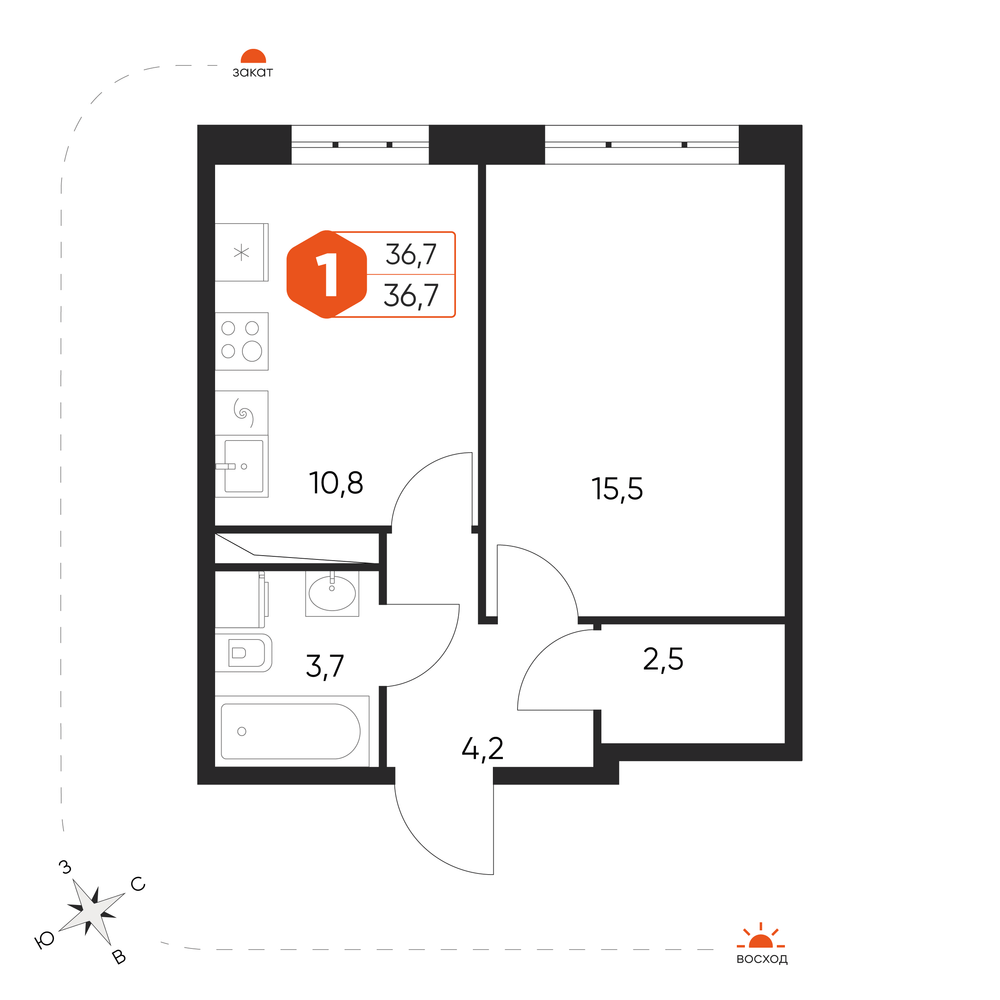 - № 1Корпус 11, Секция ЖК "Экоград Новый Катуар" корпус 11 1, Этаж 1