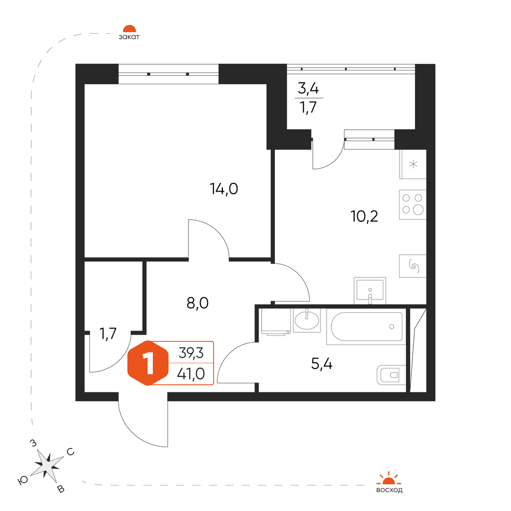 - № 14Корпус 11, Секция ЖК "Экоград Новый Катуар" корпус 11 1, Этаж 3